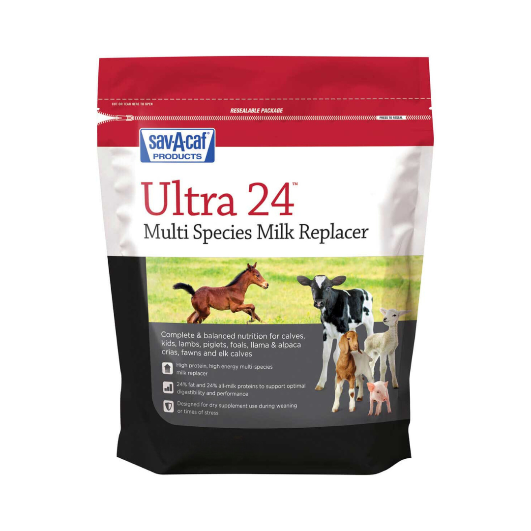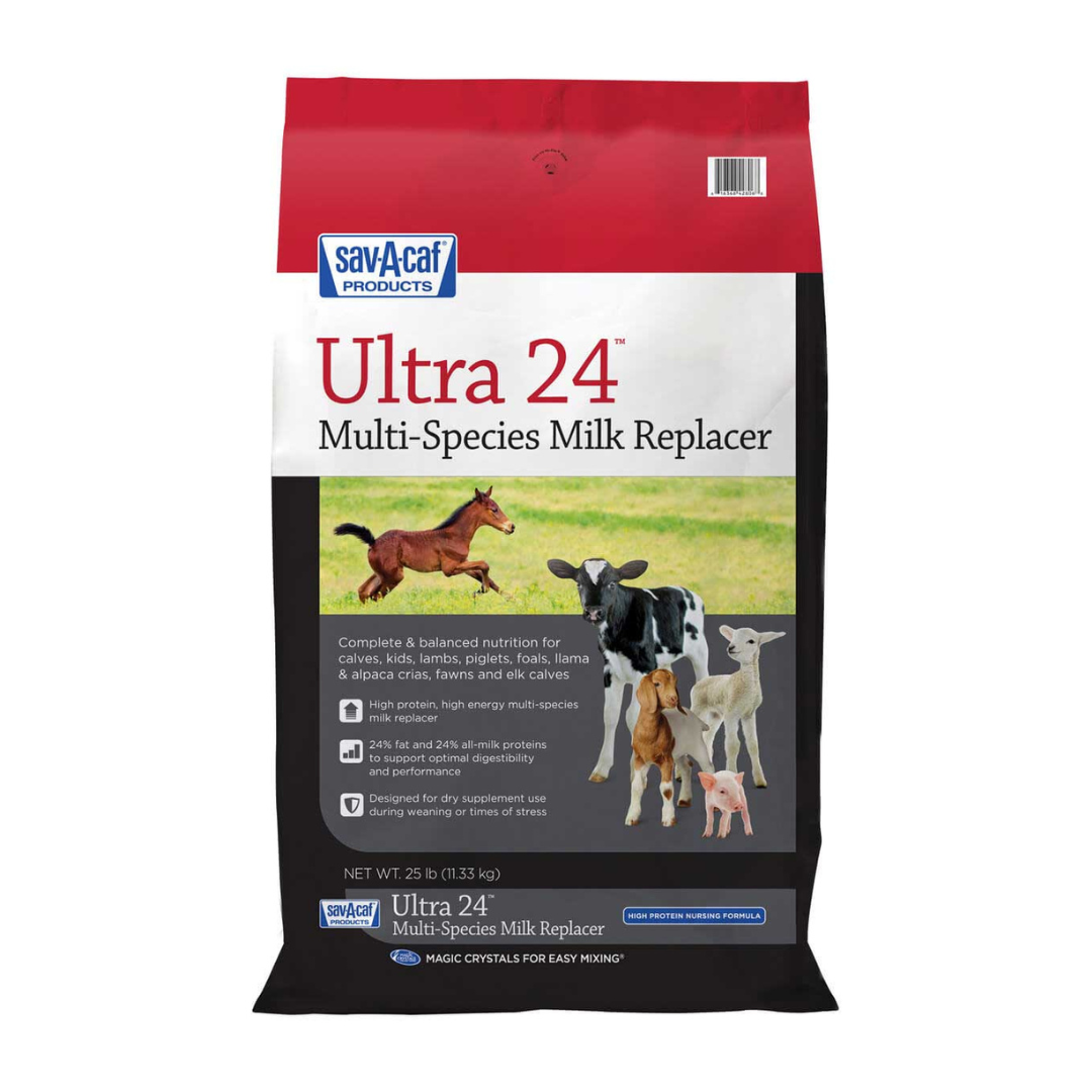 Ultra 24™ is complete and balanced nutrition for calves, foals, piglets, lambs, goat kids, llama and alpaca crias, fawns and elk calves.
