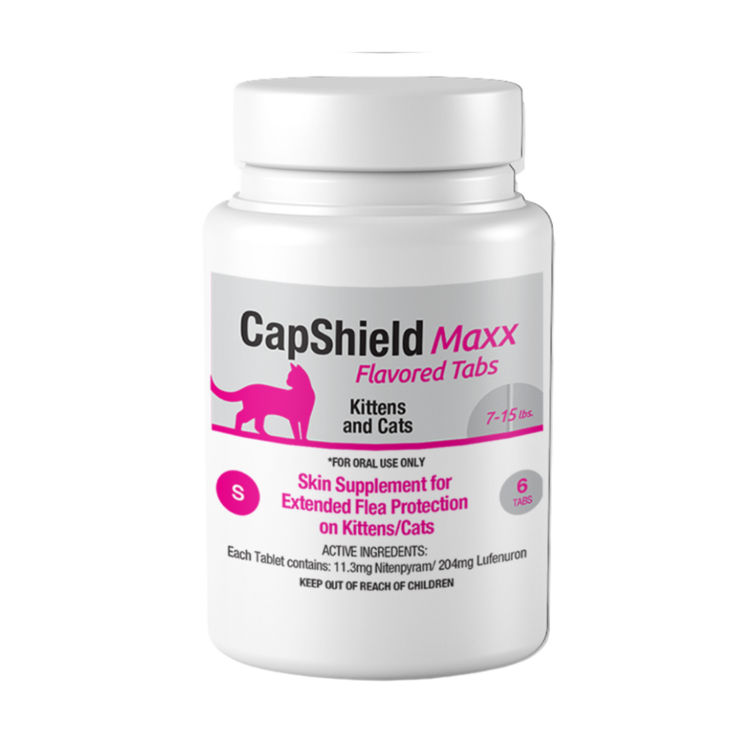 CapShield Maxx is a combination of Nitinpyram and Lufenuron. Lufenuron is a growth inhibitor (IGR) that will stay in the blood stream about 30 days. Any new fleas that get on the cat after the first day and take a blood feed will not fully reproduce.