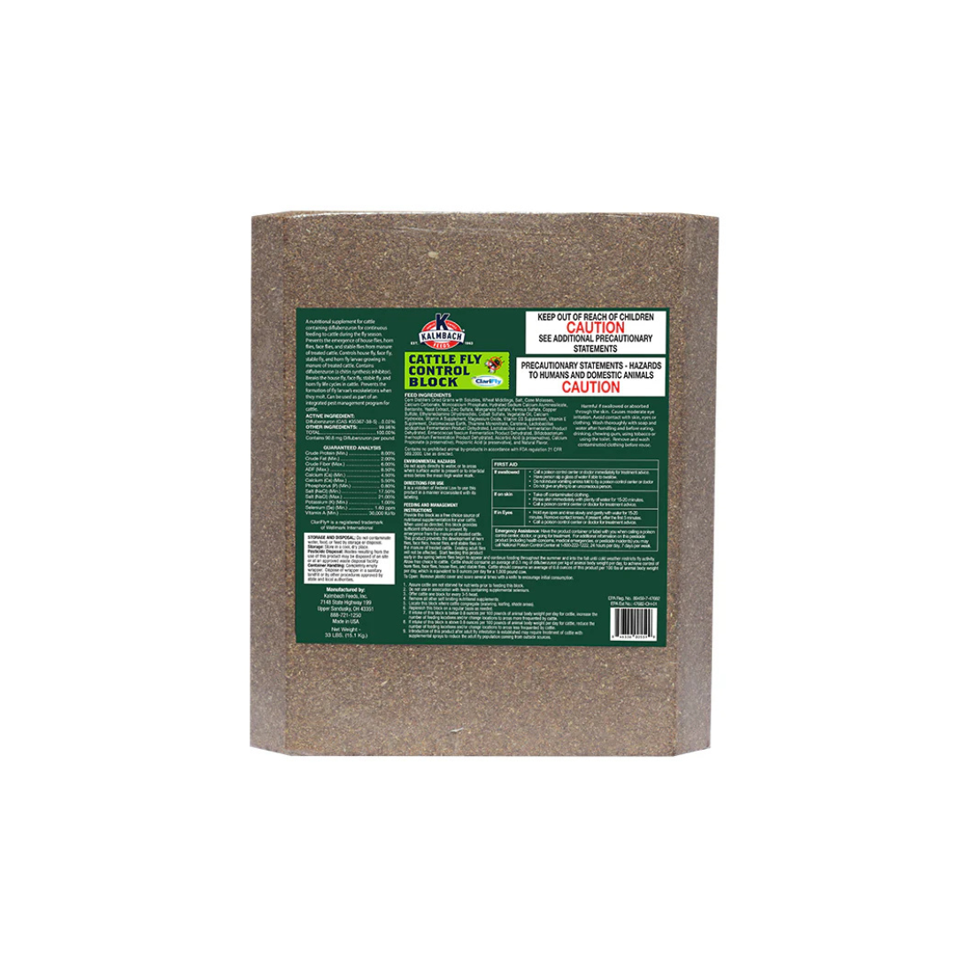 A nutritional supplement block for cattle containing ClariFly® for continuous feeding during the fly season