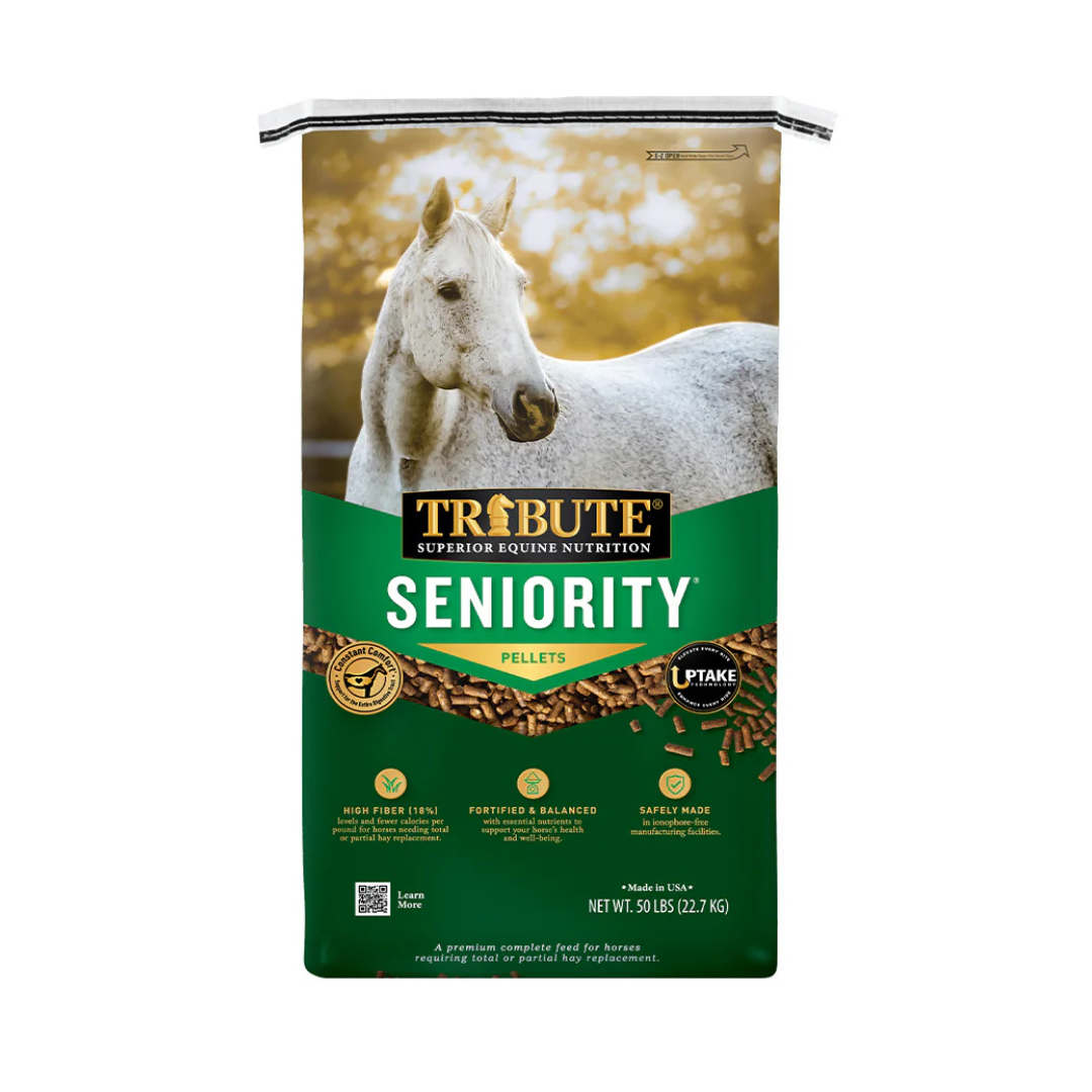 New and improved! Seniority® is a premium, complete horse feed designed for horses that require total or partial hay replacement. Now formulated with Uptake Technology™, a powerful blend of ingredients that improve nutrient absorption, and Constant Comfort®, a premium seaweed derived calcium to support gastric pH