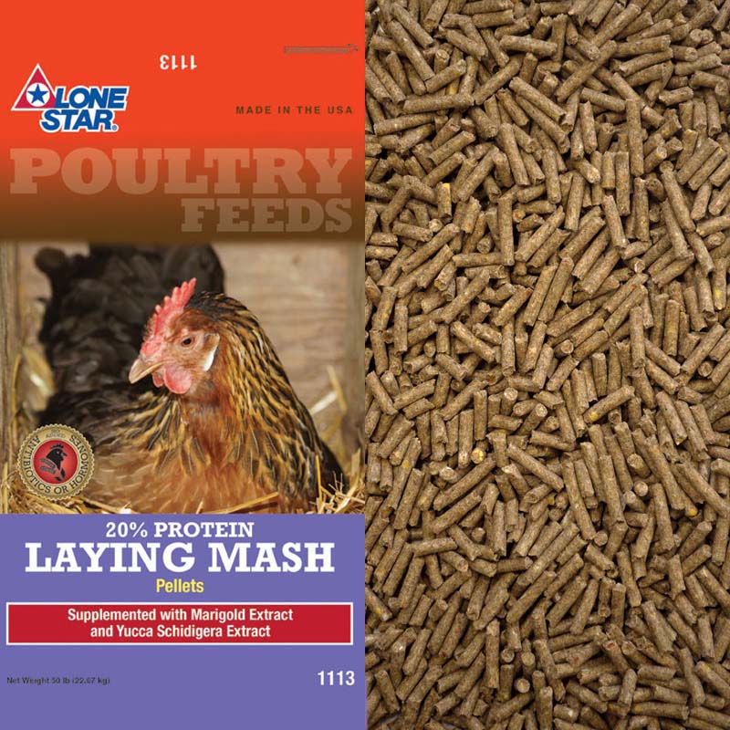 A high protein, pelletized laying ration designed to be fed along with scratch grain.
