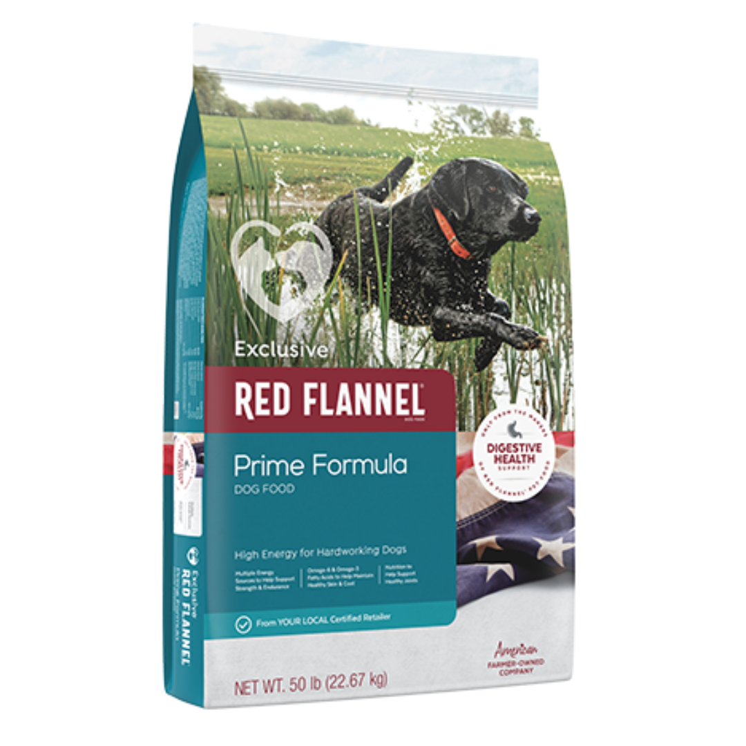Red Flannel® Prime Formula Dog Food is specifically designed to provide prolonged energy for hardworking dogs. It supplies 100% complete and balanced nutrition for your dog at every life stage including growth of large size dogs.